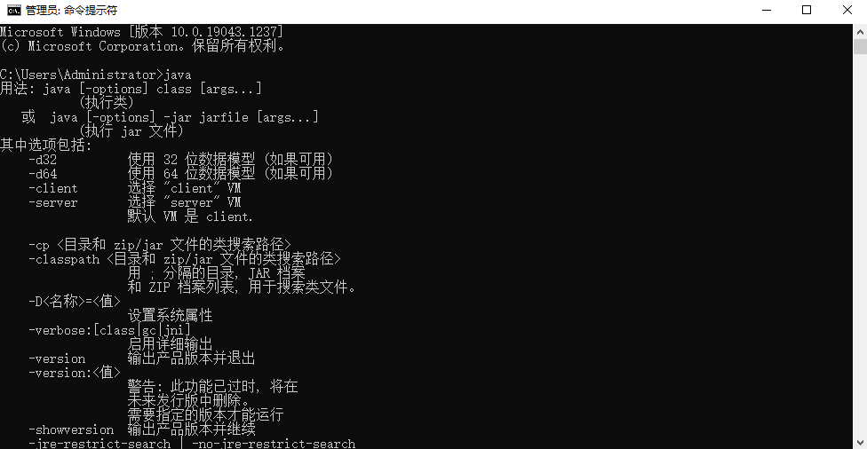 6、根据以上操作配置完成,关闭窗口。打开运行窗口输入java,能够看到java就说明配置成了了。使用Java --version还可查看当前Java的版本。