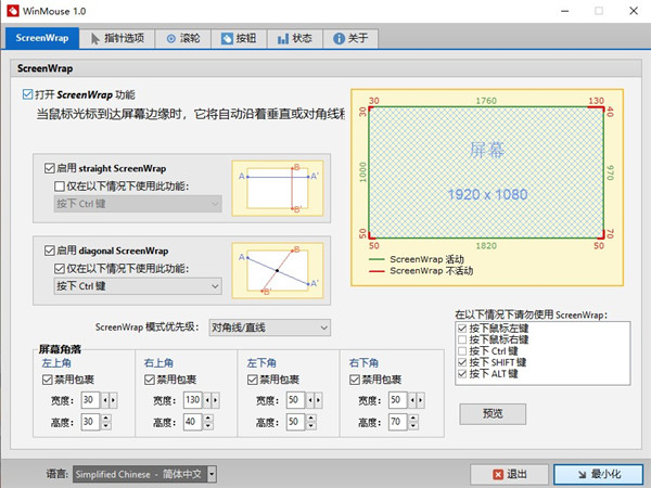2、ScreenWrap功能:当鼠标光标到达屏幕边缘时,它将沿着垂直或对角线自动移动到相对边缘。