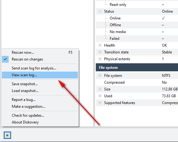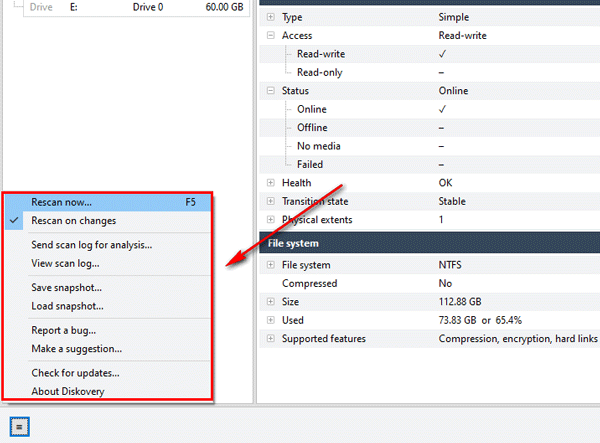 6、点击F5或者点击该选项可以刷新扫描,如果磁盘发生更改您就需要重新扫描以使得数据准确。