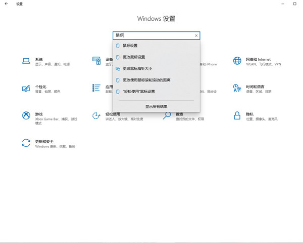 1、在“设置”菜单中,可以直接搜索鼠标,选择鼠标设置