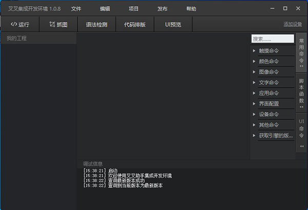 叉叉集成开发环境,一般又叫叉叉开发助手电脑版,它是一个使用Lua语言进行编写的开发环境,主要用于辅助开发叉叉助手脚本。它支持Lua的所有语法和基本函数,并配合叉叉脚本特有的函数命令,可以实现一些高级功能,如找图、找色、触摸等。叉叉集成开发环境提供了一个直观且易于使用的用户界面,帮助开发者提高工作效率。叉叉集成开发环境还具有丰富的调试工具,可以帮助开发者在开发过程中逐步调试程序,找出潜在的问题并进行修复。另外,叉叉集成开发环境还支持即时更新、集成的会话支持、丰富的Ajax支持等功能,以提高开发者的工作效率。