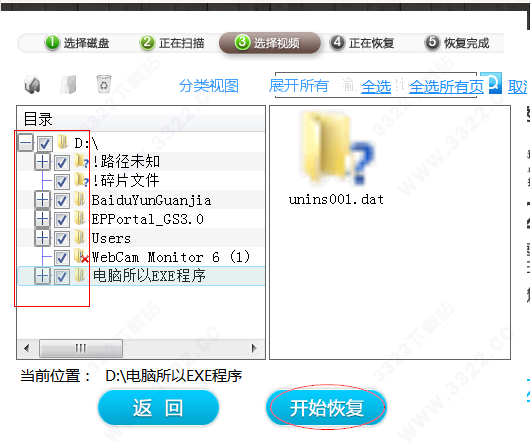 5. 操作简单,向导式的界面帮助您一步步完成恢复视频文件的操作。