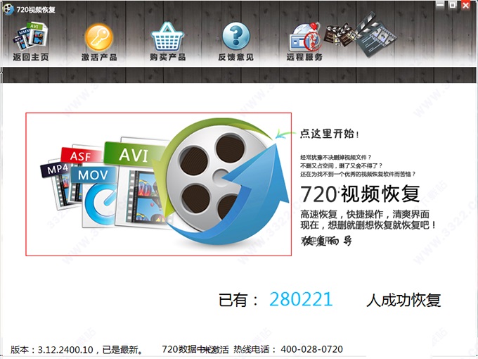 1、双击运行桌面720视频恢复系统的图标