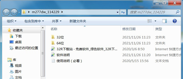 1、从本站下载惠普m277dw驱动压缩包后,将其解压后即可看到32/64位的驱动适配版本;
