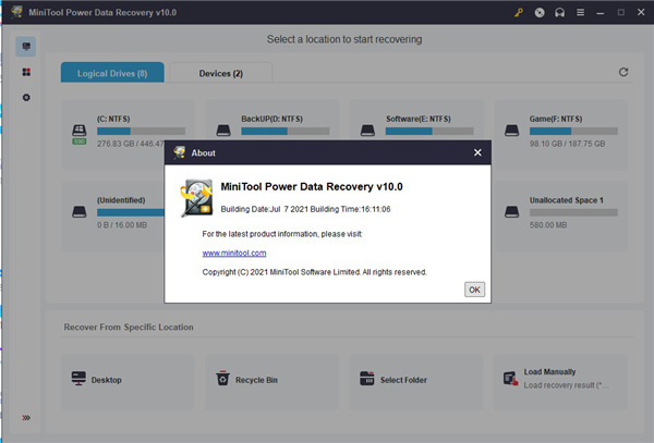 minitool power data recovery是一款非常专业的数据恢复软件,中文名称也叫做迷你兔数据恢复。它主要能够恢复因误删、病毒入侵、磁盘故障/分区、格式化、系统崩溃、硬盘故障等不同情况下数据丢失的文件,还可以恢复SD卡、移动硬盘以及光盘等多种存储介质中的数据。minitool power data recovery提供深度扫描模块,可扫描和分析原始数据格式,包括Microsoft Office文件,数字图形/图片和音频/视频文件,不论是不小心删除,磁盘分区导致的数据丢失,还是存储设备的格式化造成的,通通可以轻松找回原来的数据。除此之外,minitool power data recovery完美支持的格式系统上包含着FAT 12/16/32、NTFS等等常用的系统格式哦,至于恢复的项目嘛,图片、视频、音频和其他数据都是在其恢复范围之内的,因此不用担心自己的数据不再恢复范围的情况。软件使用简单方便,一键扫描即可快速扫描,让你的文件数据快速找回,几分钟即可完成扫描恢复。新版本还带来全新的功能和界面,带给你更加效率的还原体验。有需要的用户快快下载体验吧。