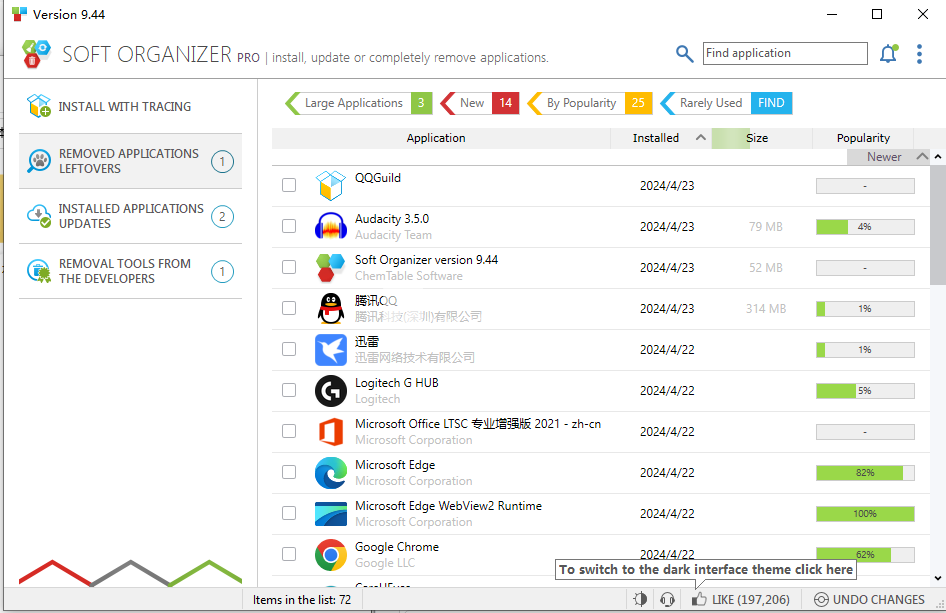 Soft Organizer Pro是一款高级的卸载工具,可以监视后台应用程序的安装过程中对系统的更改,在安装前后进行对比扫描,保存记录,卸载时按照更改进行卸载,能够更加彻底地卸载软件。