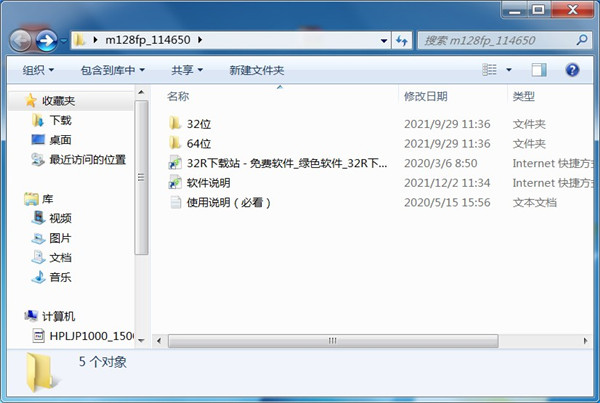 1、从本站下载惠普m128fp驱动压缩包后,将其解压后即可看到32/64位的驱动适配版本;