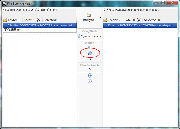 同步模式与 Analyze 分析功能需要结合使用,选择一种合适的同步方式,然后再点击分析,下面的文件列表就会列出这次将要同步的文件列表,如果没问题,点击 Action 下面的同步按钮就行了。