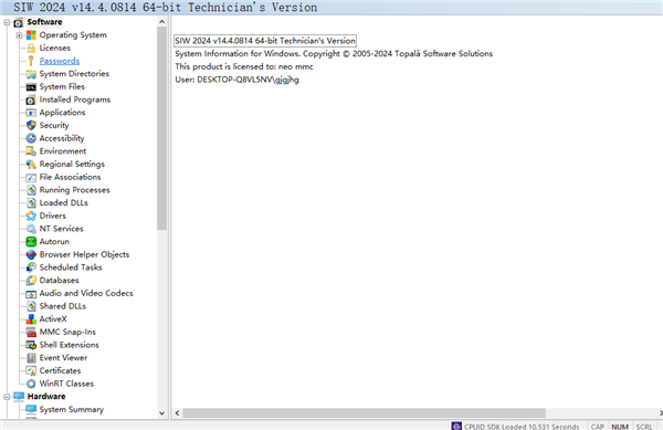 SIW2024是一款国外专门为WIDOWS系统量身定制的软硬件信息检测软件。可读取硬件设备和系统软件相关详细信息,包括主板、BIOS、CPU信息、内存及感应器、PCI插槽、声显卡及存储装置、硬盘驱动器及网络设备等信息。