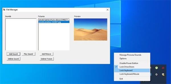 toddler keys电脑版是一款用于锁定计算机键盘和鼠标的工具,它可以在计算机锁定期间提供儿童娱乐内容,包括显示图片和播放声音。也可以通过右键单击任务栏中的图标来选择要锁定或禁用的内容,并可以通过输入设置的密码来停止程序。当键盘和鼠标被锁定时,屏幕将变黑,显示您选择的图片并对击键做出反应。