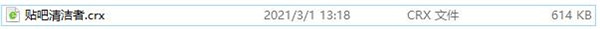 7、如果没有插件按钮的话,用户还可以通过Chrome扩展管理器找到已经安装的插件,点击在文件夹中显示,双击“贴吧清洁者.crx”