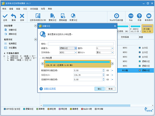 1、分区空间可视化调整分区大小与位置只要拖动滑块条
