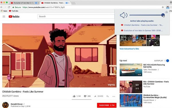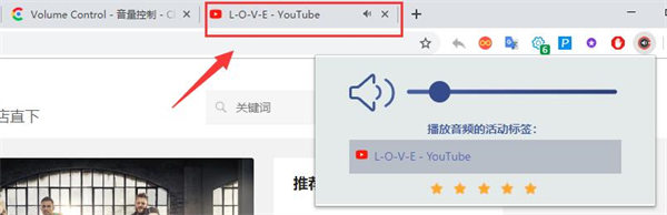 当你停留在某一网页上时,还能在扩展栏的图标上直接看到音量的具体大小