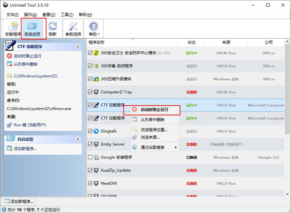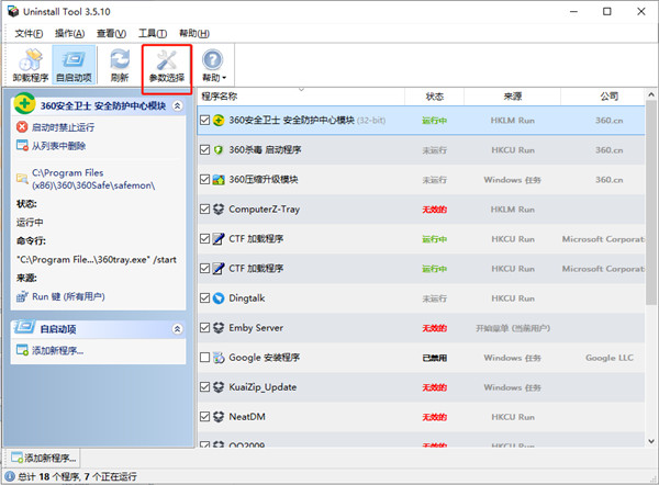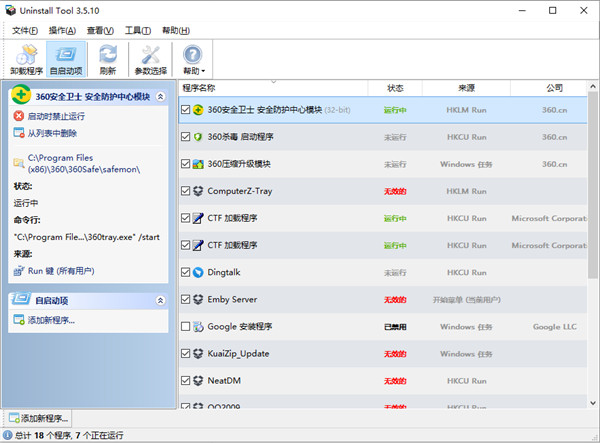 Uninstall Tool内置了一个简单的自启动管理功能,它可罗列出系统的开机项,你可方便的一键禁用或删除,实际的体验还算不错。