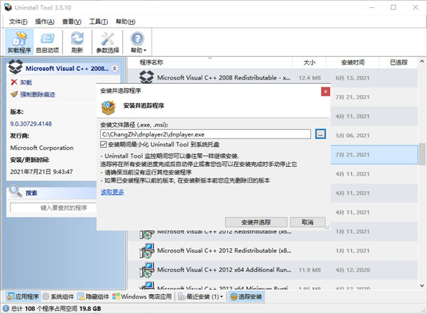 安装追踪,顾名思义,通过Uninstall Tool的监控服务,实时追踪软件的安装进程与行为,包括文件、注册表修改等并将其全部记录,卸载时可更加彻底。