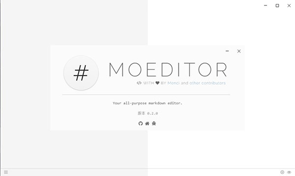 Moeditor是一款功能强大的开源markdown编辑器。小清新风格,支持TeX数学表达式、UML图、编辑器中的代码突出显示等特性,你的通用Markdown编辑器!目前还暂时不支持导出(PDF 、 HTML)文档,同步滚动也不太精准,用户界面中缺少一些元素,没有设置界面,无法修改主题。虽然它有很多不足,但足矣满足最基本的写作需求。随着版本的不断更新以后,该有的功能,都是会有的。用Electron写了一个Markdown编辑器,使用CodeMirror作为编辑框,使用 marked渲染,由 KaTeX 和 MathJax 提供数学公式的支持。
