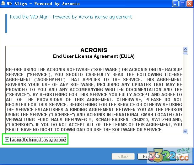 1、双击安装程序包,在弹出的窗口中点击“Install WD Align…”图标2、在您仔细阅读软件相关协议后,勾选“I accept the terms of this agreement”选项,点击“Next”进行下一步操作。