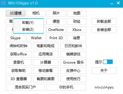 Win10Apps卸载工具使用教程