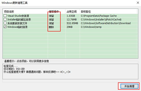 3、支持清理更新文件,更新备份文件,临时更新文件,系统日志,installer临时文件,系统更新安装文件,显卡驱动安装源等。