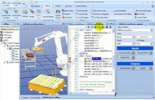 整个机器人程序无需任何转换便可直接下载到实际机器人系统,该功能得益于ABB独有的VirtualRobot技术。