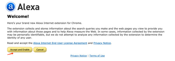 1、首次安装插件,需要对其进行隐私授权,软件通过收集并存储有关你进行的搜索查询和你查看的网页的信息,以向你提供有关这些页面的信息并帮助Alexa衡量网络