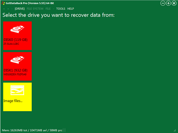 在没有连接驱动器的健康Windows计算机上安装GetDataBack。确保“良好驱动器”上有足够的空间来存储恢复的数据。如果可以访问一个,您还可以将恢复的数据存储到LAN。您运行GetDataBackPro的计算机可以具有以下任何操作系统:WindowsVista,Windows7,Windows8,Windows10。