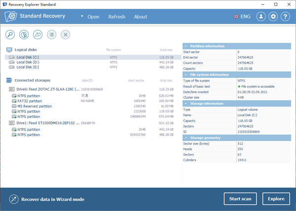 Recovery Explorer Standard采用先进的算法和技术,可以深入搜索并恢复已删除或丢失的文件。它能够检测和还原各种文件系统,包括FAT、exFAT、NTFS、HFS+、APFS等。