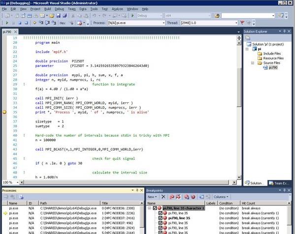 6、支持调试PGI Fortran和Visual C++ 2008的混合应用程序