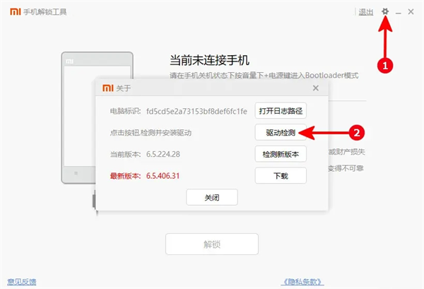 4、在本站下载小米bl解锁工具官方版,得到“miuibljs_10552.zip”,完整解压后运行里面的“miflash_unlock.exe”程序,按提示登录小米帐号