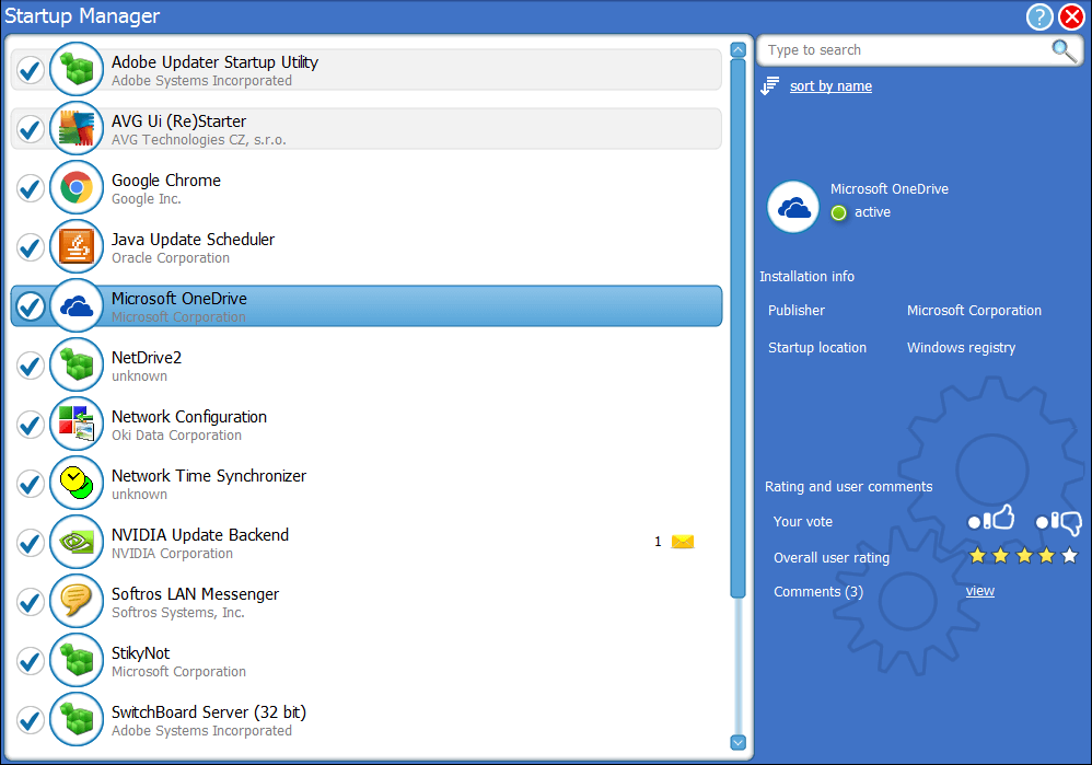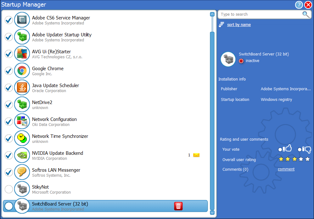 要从启动中删除一个程序,只需单击它左边的圆圈来删除蓝色的复选标记。取消选中后,该程序将移动到列表的底部,其图标将变成灰色,所以你可以告诉它已经被停用。要再次激活它,您只需通过单击空圆圈使复选标记重新出现。如果你想把它从列表中一劳永逸地删除,将鼠标悬停在它的名字上,然后点击红色的垃圾箱按钮。