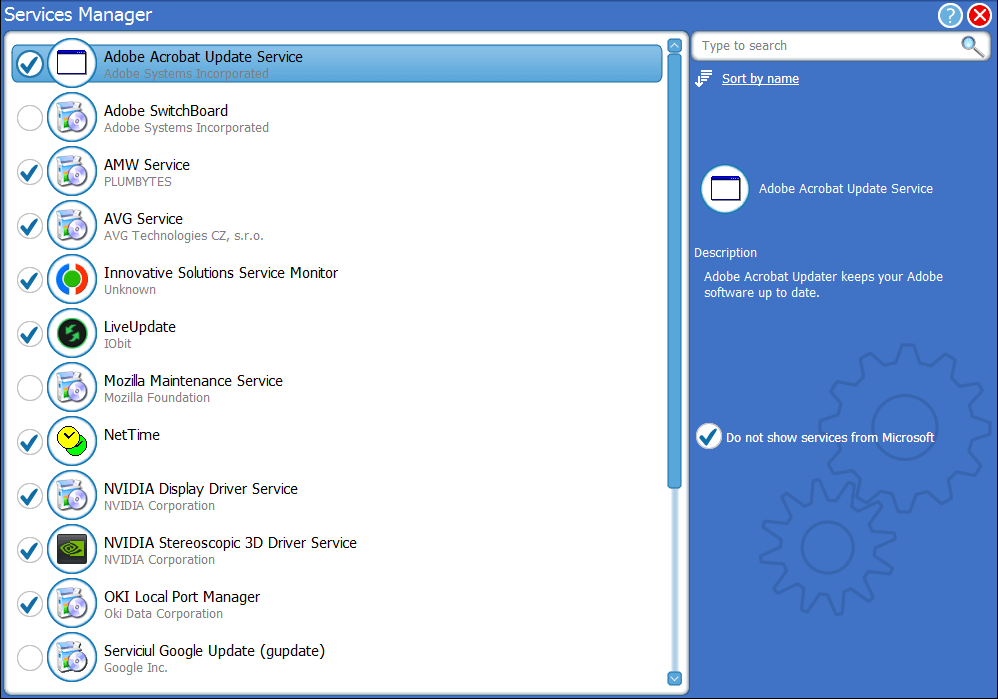 在左边你有一个可以在后台运行的服务列表。您可以通过单击它们旁边的圆圈来启用/禁用它们。如果服务有复选标记,则表示它已启用,如果圆圈是空的,则表示该服务已禁用。