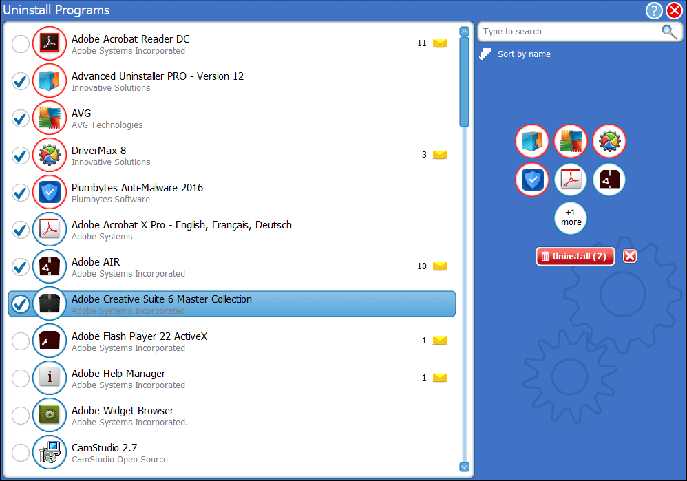 要卸载多个程序,请从左侧列表中选择它们,然后单击“卸载”按钮。在括号中,您将看到所选程序的数量。要选择一个程序,请单击其左侧的空白圆圈。选择程序后,圆圈中会出现一个蓝色勾号。要取消选择某个程序,请再次单击其左侧的圆圈,使复选标记消失。要取消选择所有程序,请单击“卸载”旁边的“X”按钮。