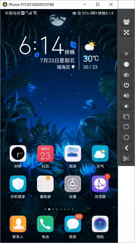 屏幕的右边是各种操作的功能,这一点就比FreeControl好,毕竟有些手机依旧存在home键