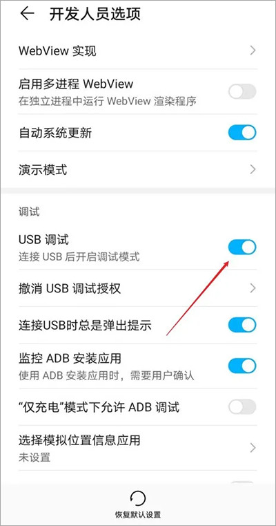 4、无论是哪种连接方式,首先需要用USB连接手机和电脑,并打开手机里的USB调试