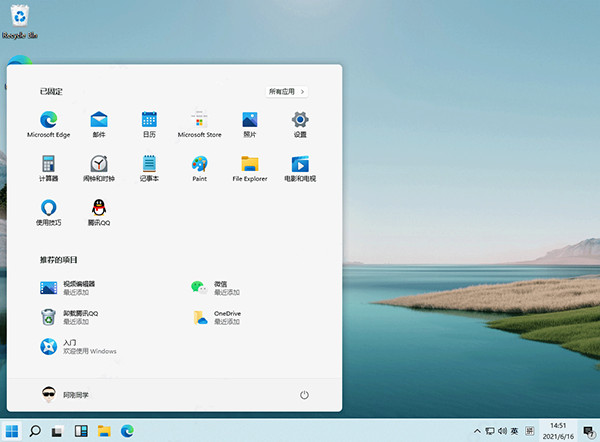 12、windows11最显而易见的变化就是开始菜单和任务栏的变化,似乎微软特别注重开始菜单的UI设计,从早前的Win7经典菜单到Win10的磁贴风格菜单,近几年这一块地方总是不断调整,但总体都是在继承上一代大体风格下的调整,而到了这新一代的Windows 11,开始菜单完全变样。
