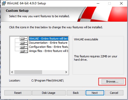 3、在这里可以指定安装路径,默认情况下安装路径在:C:\Program Files\WinUAE\。