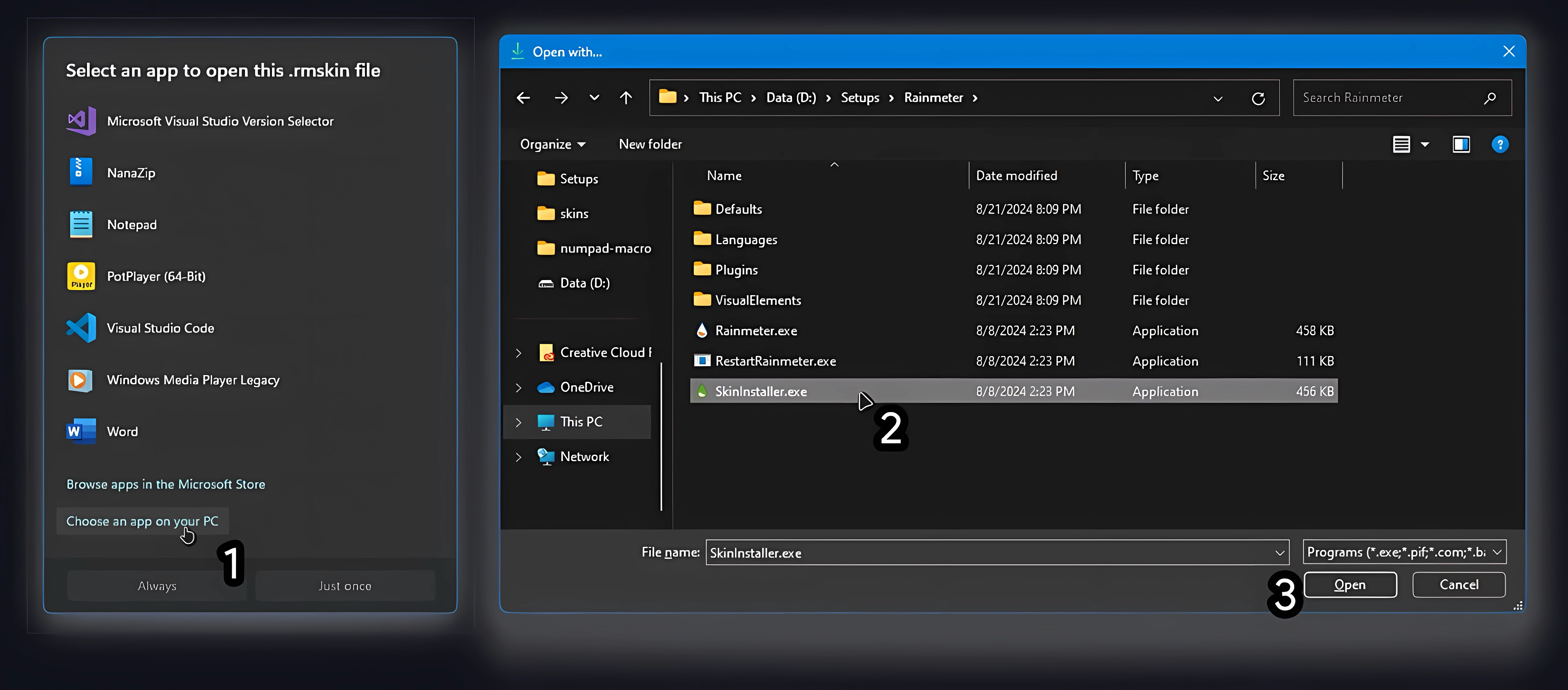 1、双击 Rainmeter-4.5.20.exe 安装Rainmeter(雨滴桌面)。