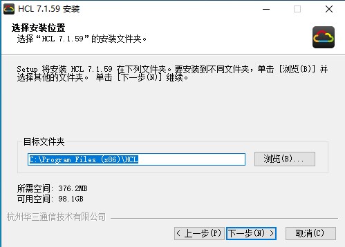 5、选择程序的安装路径,默认路径为C:\Program Files (x86)\HCL,可点击浏览更换安装路径,或直接默认,但需注意该程序全部安装需要571M的空间,请确保所选择的硬盘满足其安装要求,然后点击下一步