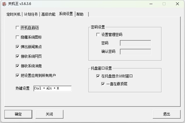 ★隐藏系统图标:隐藏关机王在电脑下方状态栏的图标