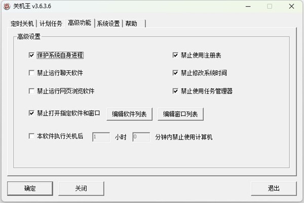 4、可以保护系统进程,禁用注册表,禁用任务管理器,防止强制退出关机王软件,破坏关机任务。