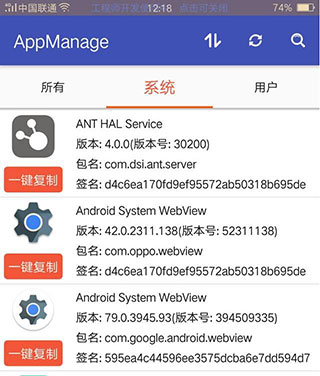 4、需要注意的是,它只会显示APP英文名称,不会显示中文名称。因此,大家最好先在手机上搜索安装一个AppManage包名查看软件,用于英文名和中文名之间的对比。