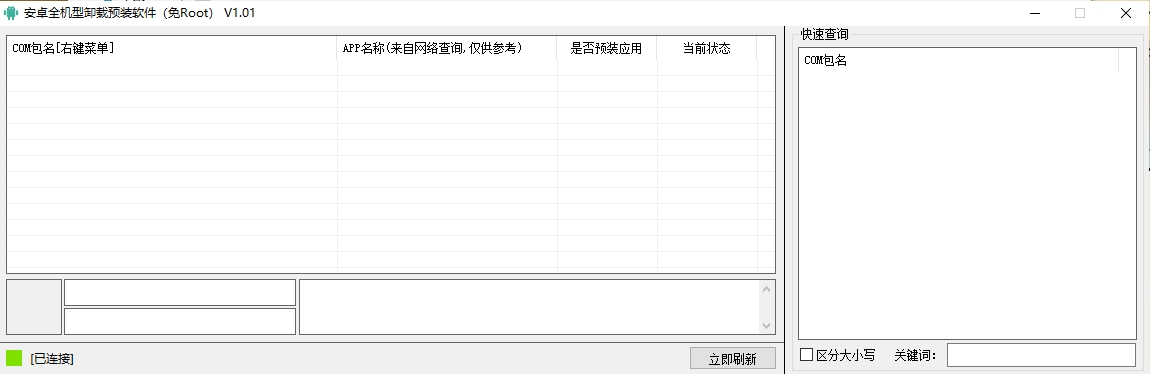 3、在电脑上打开安卓全机型卸载预装软件,软件会显示已连接,并罗列出所有已安装的应用,包括系统应用。