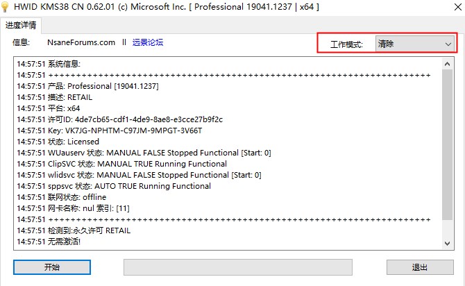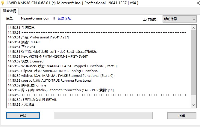 1、数字激活: 支持所有版本的数字权利激活,但不支持LTSC 2019和Server。 2、KMS38激活: 支持所有版本KMS激活至2038年,包括LTSC 2019和Server。 3、安装数字密钥: 为支持的数字权利激活的版本安装通用默认密钥。 4、安装KMS密钥: 安装KMS38激活方式的通用密钥。 5、清除: 使用此功能清除KMS激活系统上的"180天锁定"。 如果Office已安装,请勿使用!在这种情况下,请参阅<重置>模式。这将重建许可证文件。如果有错误,请重启! 6、清除_ClipsvC: 仅在不同的计算机上使用系统映像时用于清除HWID/Store令牌(无法激活具有相同令牌的两个系统)。 7、重置: 使用此功能清除KMS激活系统上的"180天锁定”。仅在Office已安装时使用。这需要重启(强制性!)。 8、禁用网卡和启用网卡: 将网络适配器状态更改为启用/禁用。软件亮点