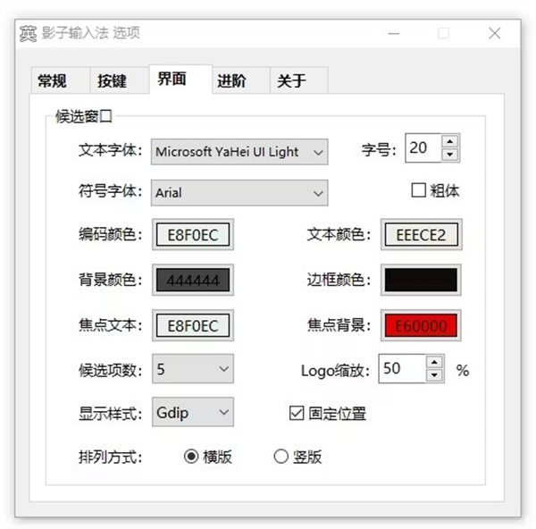 4、界面设置:内置的样式有两种,如果不喜欢也可以自定义输入框颜色配置。