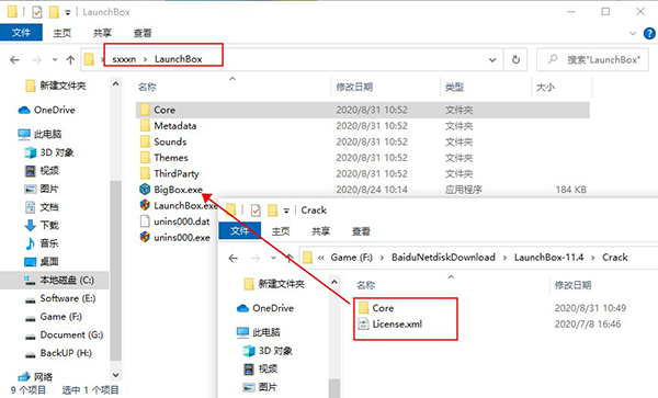 5、将crack-Core文件夹下的“Unbroken.LaunchBox.Windows.dll”复制到源程序安装目录下。