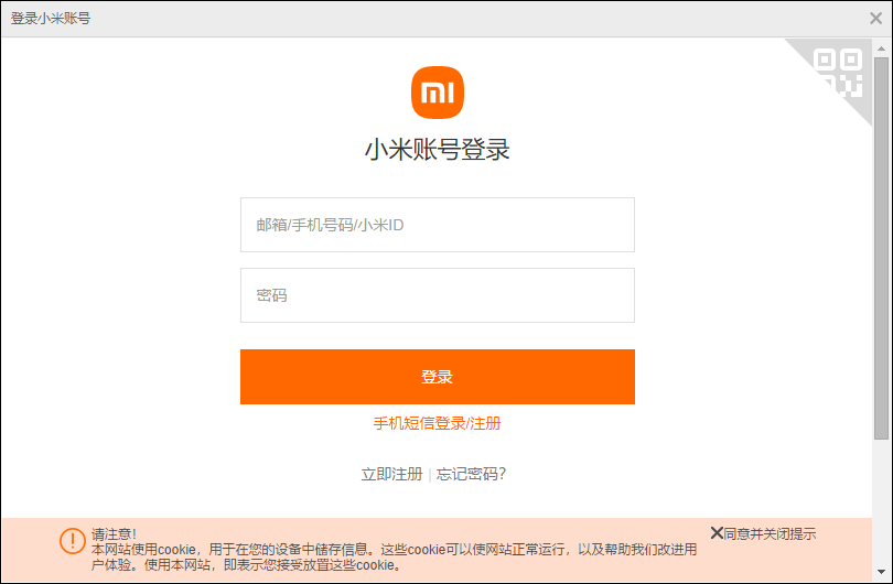 2、在需要解锁的设备中登录已经具备解锁权限的小米帐号(解锁申请)