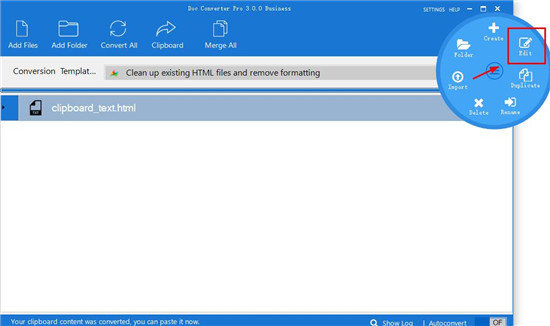 1、简单且强大的文档格式转换器,支持转换的格式十分丰富,可满足用户的各种转换需求 2、这款工具简单易使用,无需特别的去学习使用它,打开后按照提示就可以轻松转换 3、拥有很高的文档转换效率,转换速度是其它文档转换工具多倍 4、添加文件后无需设置任何参数就可以直接转换,非常的方便,还可以将其发送到剪切板中 5、该软件使我们可以在同一时间转换单个文件或多个文件,是一款非常出色的文档转换工具 6、Word Cleaner具有内置的编辑器,但您可以根据需要指定其他编辑器更新日志