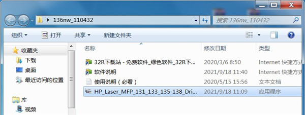 1、从本站下载惠普HP Laser MFP 136nw一体机驱动压缩包后,将其解压后即可看到32/64位的驱动适配版本;