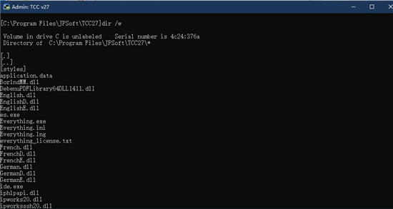 JP Software TCC 是一款专业且十分实用的CMD替换命令处理器应用,软件功能强大,使用便捷,全新覆盖交互式的GUI和命令行环境,能够有效的帮助用户在使用Windows命令提示符和编写批处理文件变得简单、容易。而且,JP Software TCC 官方版中不仅可以支持您与现有的命令行应用程序、或批处理文件等一起使用,在命令行和批处理文件功能上方面也进行了重大改进,向您的命令提示符窗口添加了数千个新功能,其中包含210多个新命令,720多个内部变量和函数,以及功能强大的批处理文件IDE编辑器/调试器,语法着色,高级命令行编辑和可编程的制表符完成等,从而全方位满足你的使用的需求。旨在为用户提供全方面的帮助,在提高开发效率的同时减少语法错误,可以说是为广大编程、开发的用户朋友带来的最专业优质、又便捷好用的命令处理器解决方案。有需要的朋友欢迎前来免费下载体验哦!