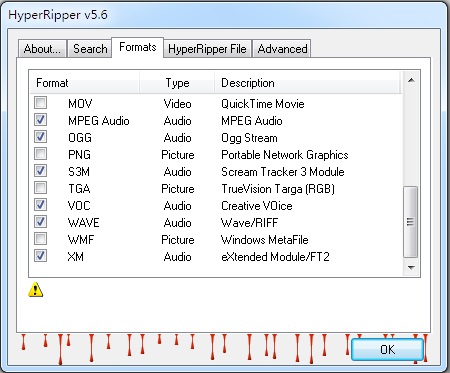 3、弹出的对话框中,切换到format选项卡,;老规矩选wave,ogg等文件(Dragon UnPACKer同样可以提取AVI等其他文件)